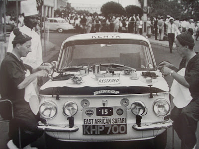 quote:Buonasera popolo dei rally. Volevo chiedere al grande Silvioj quante auto ha guidato nella sua brillante carriera ma sopratutto se la Daf della foto sotto era pilotata da lui! >> No, caro vice commissario Marco... non ho mai guidato la Daf Rally nella mia brillante carriera con due mani di polish... io le mani le mettevo sul volante di auto ben più importanti e performanti e spesso le dotavo anche di forchetta e coltello per gratificarmi dagli ottimi risultati ottenuti nelle gare che contano, tipo questa "East African Safary" dove con il mio fedele navigatore francese Alain, a bordo di una NSU TT 1000 arrivammo alla fine della gara con un vantaggio talmente grande che ci permise di consumare un lauto pasto in attesa di timbrare, servito con posate d'argento nientemeno che da un cameriere/chef in livrea... d'ordinanza con tanto di cappello inamidato... [:D] La foto allegata (equipaggio n° 15 Alain-Silviòn) ci ritrae mentre consumiamo una melanzana alla parmigiana africana, in attesa del commissario capo Rudy che vedete in fondo a destra in maniche di camicia e con le mani nei capelli, che come solito arriva al controllo in ritardo... [:D] Per esempio oggi non si è proprio ne visto ne sentito... e se continua così, guarda caro Marco, telefono a Jean e ti faccio promuovere capo per meriti forumistici e assidua partecipazione senza retribuzione... [:D]