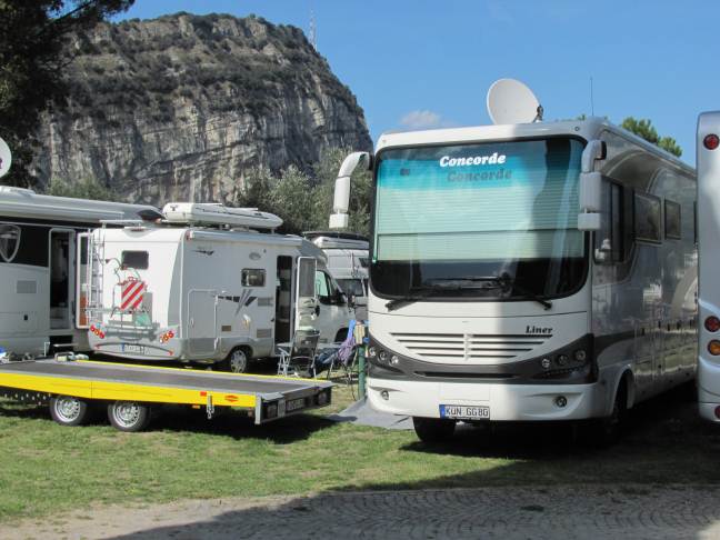 Per quanto riguarda camperstop Torbole ci sono sempre dentro mezzi enormi, ci ho visto Morelo, Vario, Clou, Flair e soprattutto Concorde, le piazzole non sono larghe, anzi (soprattutto per chi ha questi mezzi), comunque l'annoscorso o un paio di anni fa ci è entrato un Clou da 10 o 12 metri (non ricordo) con carrello appendice doppio asse in tinta col camper (credo fosse un esemplare unico, dovrebbe avere anche un sito) Nei campeggi affianco avresti difficoltà anche se ci ho visto Phoenix ecc ecc ma da 10 metri in su no, almeno che non sia l'unico e allora ti piazzi davanti alla reception di traverso e amen. Qui a Pasqua, affianco un Phoenix più lungo, in fondo a destra un Morelo, all'inizio della AA un altro Morelo di traverso ecc ecc. Ma il Conchi aveva anche il carrello. Ciao Sono un alCOLista anonimo.