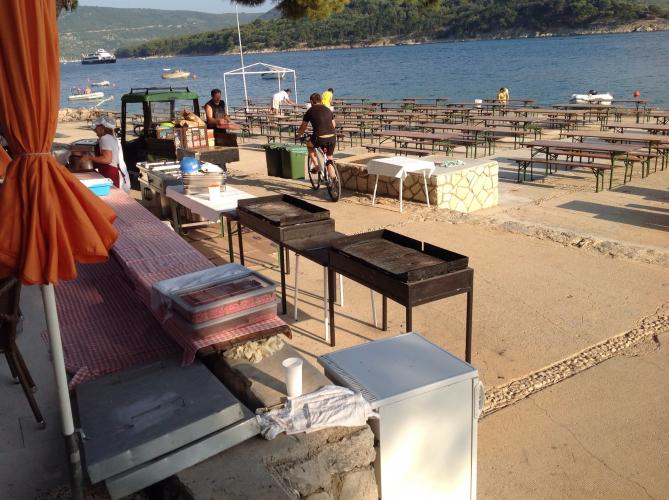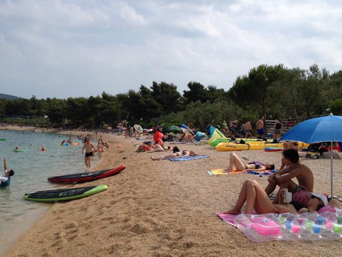 Siamo rientrati ieri dal Camping Kovacine a Cres. Per me è il massimo che si possa chiedere in Croazia, ma.... l'hanno scoperto in tanti! A giugno era già affollato, ma é talmente grande e ben organizzato che non cisi fa caso fin che non si vuole andare in spiaggia. Benchè sia una delle più estese che si possono incontrare da quelle parti é sottodimensionata per ospitare tutti gli ospiti del campeggio, quelli dell' hotel, quelli del vicino villaggio, quelli che vengono lì dal paese vicino. Questa foto la riprende sabato scorso alle dieci, non so cosa sarà a luglio e a agosto. Qui non posso riportare la foto della zona riservata, promiscua, ai cani e ai naturisti: in quella non c'era nemmeno più posto in piedi! Solo in acqua... Ci siamo anche sorpresi di trovare spesso l'acqua non all'altezza della limpidezza a cui ci aveva abituato la Croazia,ma forse sarà stato un caso Docce e bagni ben distribuiti, ben curati, ottimi Gestione dei rifiuti che al mio paese ce la sogniamo Trenino che fa la spola col vicino paese di Cres per chi non vuole fare a piedi il tragitto sul lungomare, animazione discreta per i grandi e per i piccini, diving, parchi gioco, campo da volley in sabbia, bar e ristorante, negozi vari, reception sempre aperta, lavaggio auto con aspirapolvere, wc chimic che di meglio non ho mai visto doccie per il cane passeggiata nella natura che porta a una spiaggietta poco lontana Sembra uno spot pubblicitario, ma anche io che di solito sono una criticona, quando le cose sono belle e funzionano bene , lo so vedere... Spero di esserti stata utile e comnque ti auguro una buona vacanza!