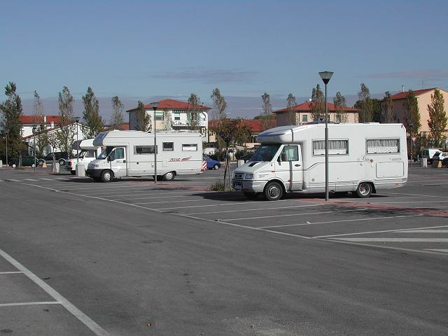 numerosissimi venditori ambulanti poichè zona sosta bus turistici, ma comodissima al centro (la Torre...) e sicura la notte.