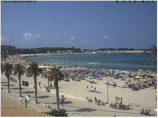 Ma la spiaggia non è stata fatta artificialmente? A me avevano detto così, pensavo fosse una cosa risaputa da tutti, se ho sbagliato chiedo umilmente scusa. Se è naturale tanto meglio e sono contento di essermi sbagliato,e lo dico da siciliano. Certo che l'affollamento del mese di Settembre non è e non può essere quello di Luglio/Agosto... però non mi sembra poco per la stagione: Webcam presa dal sito