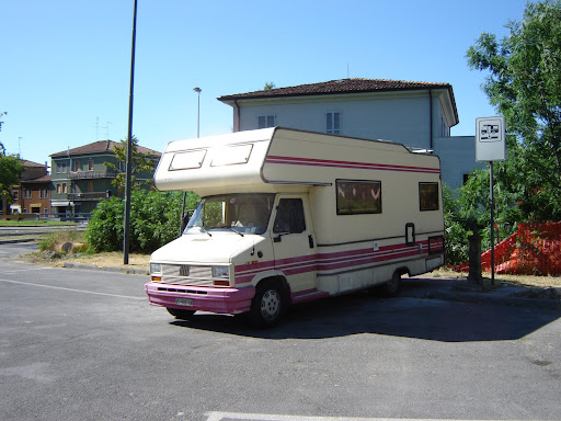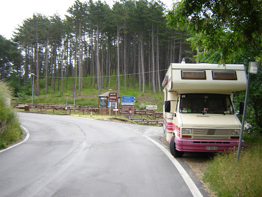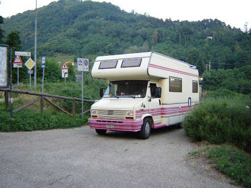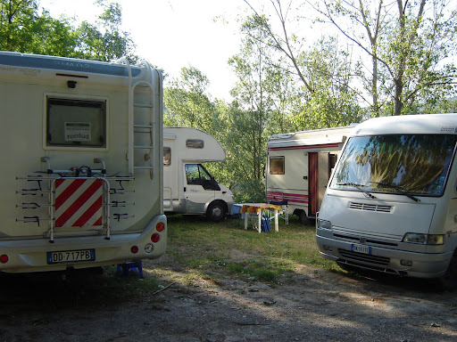 nb sullo sfondo si intravede tra gli alberi in nostro solo ed isolato camperino