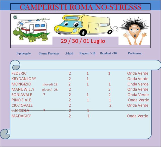 ROLLINA quote:Risposta al messaggio di Rollina inserito in data 19/06/2012 13:46:45 (Visualizza messaggio in nuova finestra)>> Ciao Fede, io ti consiglierei Pescia romana "la Pineta"[;)] oppure Montalto,ma io non conosco[xx(] Noi purtroppo faremo un pò toccata e fuga e non sappiamo ancora se andremo direzione mare o lago a causa delle festicciole di fine anno scolastico alle quali Lorenzino NON PUò RINUNCIARE!![xx(][:D] e che ci obbligheranno a rientrare in orari particolari.[}:)] Buon ammollo[:D][;)] Messaggio per i Mongizi: se riuscite e avete tempo rimettete la lista aggiornata con le presenze[:D][;)] Grazzzzissssime[;)]id="Comic Sans MS">id="size3">id="purple">