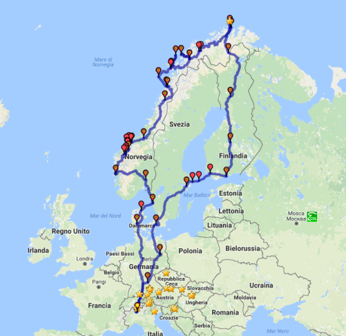 Vedo solo ora al ritorno dalle vacanze il vostro itinerario di viaggio a Capo Nord, è quasi interamente corrisponde al nostro fatto nel 1989, noi siamo partiti da Parma fu un viaggio indimenticabile durato 5 settimane.