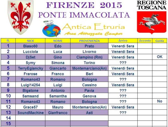 A breve Luca ci comunicherà numero Iban dell' area di sosta dove verseremo una quota di €18 per la prenotazione, il saldo si farà sul posto.