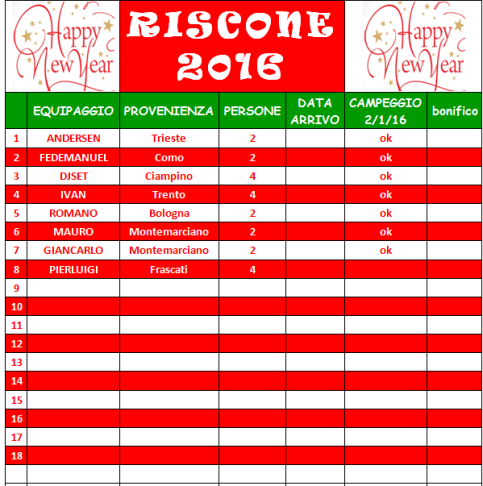 Ci siamo, si avvicina a grandi passi il 31 dicembre e, per la prima volta, ci ritroveremo per i festeggiamenti a quota 956 mt, in mezzo alle Dolomiti nel paese di RISCONE appena sopra BRUNICO e ai piedi del comprensoriosciistico di Plan de Corones. A partire da giovedì 31 fino a domenica 3 gennaio potremmo passare delle giornate in allegra compagnia in mezzo ad un paesaggio stupendo, una bella ciaspolata sulla neve e poi al relax in piscina, oppure a spasso per mercatini per poi riscaldarsi con vin brulèè e bretzel allo speck tirolese, per gli sportivi invece ad attenderli ci sono meravigliose piste da sci, mentre per chi vuole divertirsi con gli slittini la scelta e ampia. Cosa aspettare allora ... il locale per fine anno è tutto nostro … musica, divertimenti e ottimo cibo… Questo è il programma per i 4 giorni: Questo il menù per la sera di San Silvestro: E questa è la ormai immancabile lista dei partecipanti: Per le adesioni o domande inviate la mail a: ivan998@interfree.it La quota da versare come caparra per il cenone è di € 20 a testa, il restate quando ci ritroviamo, e vi comunicherò gli estremi per il versamento al momento della vostra adesione. Per le altre spese (cena del 1 gennaio, piscine e campeggio del 2-3 gennaio) si salderanno direttamente in loco. Ciao. Ivan.