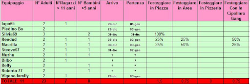 il programma a pagina 76 Ora devo scappare…… Domani preparerò la tabella con tutte le preferenze… Dite la vostra raga…… E GRAZIE ancora al mitico GINO Ciauz Alberto id="blue">id="Book Antiqua">id="size4">quote:Risposta al messaggio di reedud inserito in data 11/12/2009 20:34:01 (Visualizza messaggio in nuova finestra)>> ciao Alberto....per noi il..."gemellaggio" [:D][:D][:D]...è una buona soluzione e ci interessa...[;)] solo non mi è chiara una cosa...noi andremmo lì solo per il cenone o anche per sostare nell'area? i posti a disposizione sono quelli della lista da 20 che si trova nel loro forum o sono di più? riguardo il discorso pizzeria...ovviamente roma non è vicenza [:D] ma da noi ci sono moltissimi locali che sono aperti come nei giorni normali e i prezzi sono quelli di tutti i giorni....se si volesse seguire questa soluzione....potremmo provare a vedere quando arriviamo (28 sera) se qualche locale in zona è a disposizione...ovviamente questo vuol dire che è una soluzione dell'ultimo momento...perciò se non è fattibile rimane solo l'area o la piazza...[:)] naturalmente rimane (purtroppo [:(!]) il discorso che io scrivo contando sul fatto di esserci...ma resto in stanby almeno fino al 20 [:(][:(] ciao a tutti lorenzo