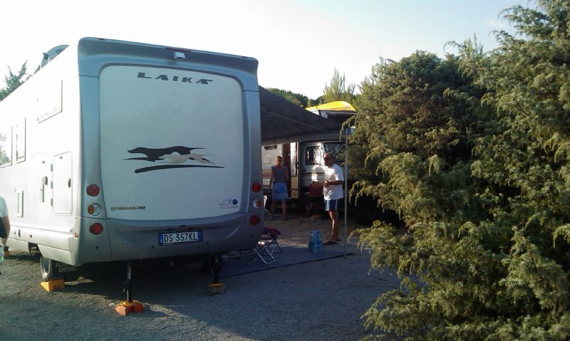 In tutto questo, nonostante le nostre evidenti ragioni, non abbiamo riscontrato da parte dei gestori alcuna disponibilità alla risoluzione del nostro problema, visto che ovviamente gli “stranieri” con tanto di barche, jeep, moto d’acqua e quant’altro necessario a riempire le loro casse di denaro, sono più importanti del connazionale che si lamenta solo perché si trova la sua piazzola invasa da una piccola tenda e il cavo di alimentazione trasformato in una corda di inciampo per permettere al camper degli educatissimi vicini di parcheggiare invadendo lo spazio stradale, per non occupare quello della piazzola, destinato ad altri usi…Difatti, dopo qualche ora la piazzola adiacente aveva il soggiorno con angolo cottura, parco giochi per i bimbi, zona tenda, zona parcheggio, campo polivalente da golf, da calcetto e da tennis…[:(!]