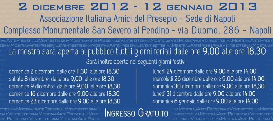 che si svolgera' all'interno del centro agroalimentare di Salerno e per le strade di Paestum Continua la manifestazione Natale al castello di Limatola.id="blue">id="size3">quote:Risposta al messaggio di dip64 inserito in data 27/11/2012 10:53:56 (Visualizza messaggio in nuova finestra)>> Ciao, vorremmo uscire anche noi per quella data, visto che questo we restiamo fermi. Non abbiamo ancora programmi. Se hai idee fammi sapere che possiamo organizzarci, sperando in un meteo clemente per quei giorni.