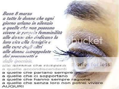 quote:Originally posted by maurito54> grazie dell' augurio da parte di Ivana sebbenchè, almeno a parole, non tenga molto alla festa della donna. Ma le donne sono sempre...... comprensibili???.... ciao Isidoro