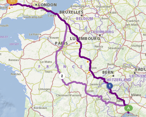 Ciao IgorS, una domanda forse sciocca, ma forzare l'itinerario 2 ad andare su, verso Dijon e ricongiungersi all'itinerario 1, che risultati da?