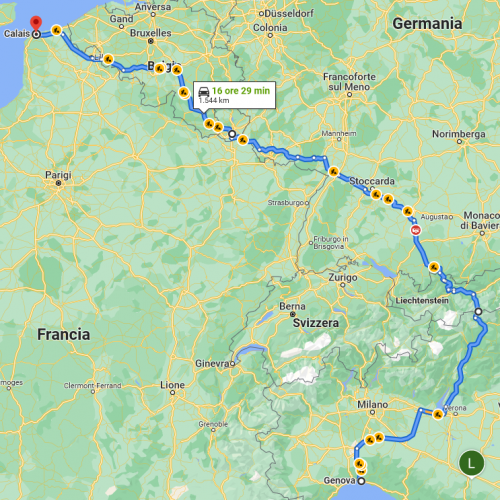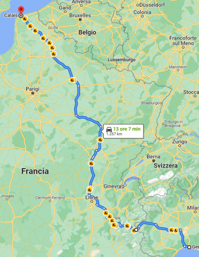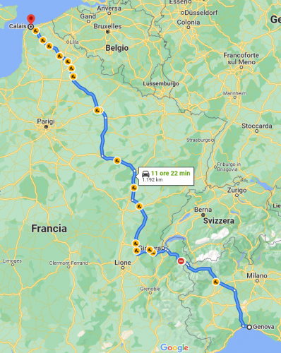 Igor, Molti ti hanno già dato indicazioni sui vari percorsi. Io sono andato una sola volta in GB e ho preferito fare la Francia, dove oramai sono esperto delle strade che ho percorso tantissime volte. Partendo da Firenzesono passato dalla tua Genova e poi essendo estate ho fatto il Moncenisio. Te potresti fare comodamente il Monginevro e Lautaret. e dopo tutte statali e pezzi di autostrada gratuita. Una cosa consiglio di entrare in autostrada prima di Lyon e uscirne dopo perchè attraversarla vuol dire fare code su code. A grandi linee Monginevro, Grenoble, Lyon, Beaune, Dijon, Châtillon-sur-Seine, Troyes, Châlons-en-Champagne, Laon, Saint-Quentin, Arras, Calais totale 1300 Km Noi da firenze ci abbiamo impiegato due giorni e mezzo circa, con 250 km più che da GE. Tieni conto che i nostri ritmi sono molto blandi in quando avendo il cane gli orari sono elastici e le soste sono abbastanza lunghe. Se gli vuoi dare un'occhiata QUI trovi il nostro diario del 2018