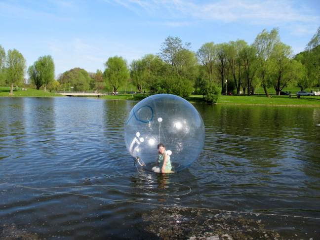 Germania, divertimento al laghetto dell'Olimpia park di Monaco di Baviera.