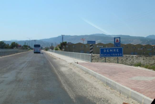 Turchia, ingresso alla cittadina di Demre come si può notare nel cartello oltre alla località c'è il numero degli abitanti.