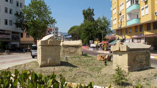 Turchia, antichi sarcofagi come spartitraffico nella cittadina di Mira.
