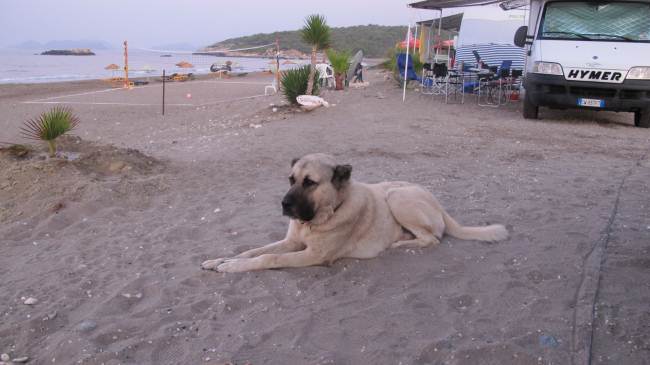 Turchia, sosta notturna sulla spiaggia non lontano da Myra con la compagnia di questo mastino turco.