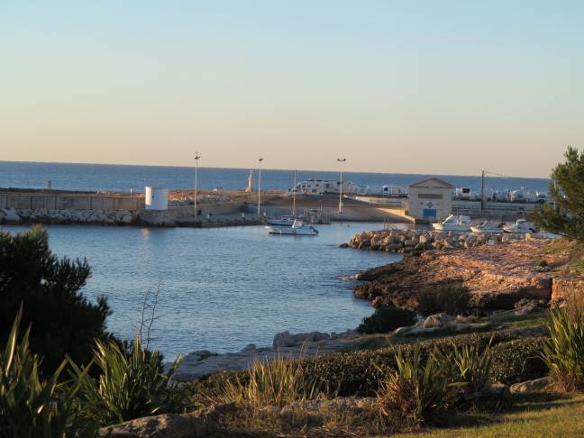 Francia, veduta del porticciolo di Carro, sullo sfondo l'area di sosta.