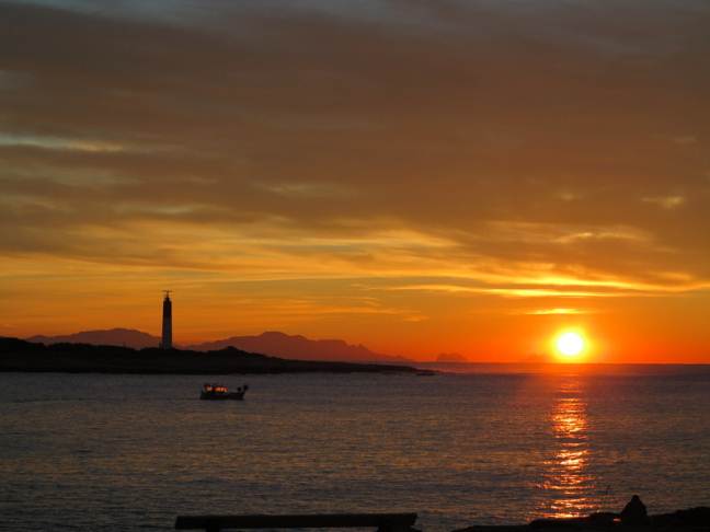 Francia, il sole stà sorgendo alle spalle di Marsiglia visto da Carro.