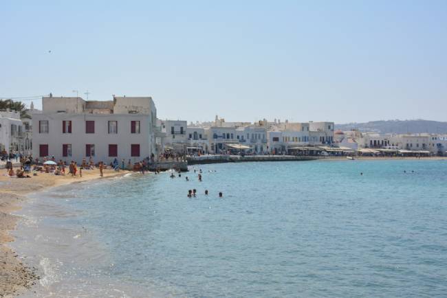 Grecia, bagnanti a Mikonos.
