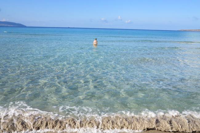 Grecia, bagno nel mare di Elafonissi.
