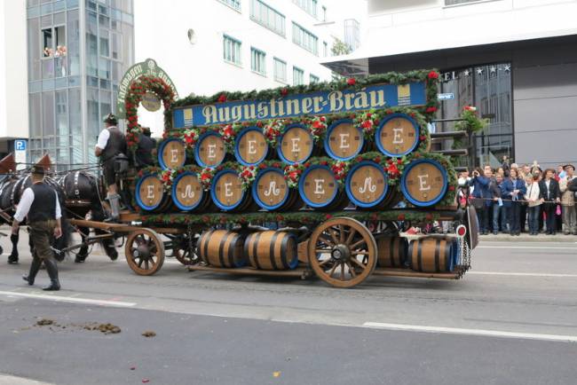 Germania, carro della Augustiner Bräu durante la sfilata di apertura dell'Oktober Fest di Monaco di Baviera.