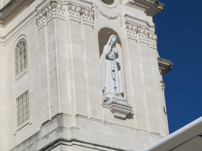 Portogallo, la statua della Madonna sulla facciata della basilica di Fatima.