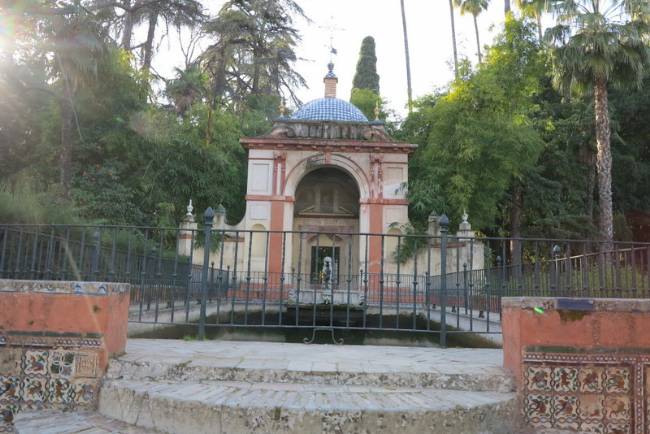 Spagna, fontana nei giardini dell'Alcazar di Siviglia.