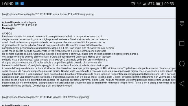 Se mi vuoi dire il costo del traghetto preventivamente e la questione acqua,quando tornerai unicamente se si può' sostare in libera con un camper di circa 7,80 m. Per andare a Gavdos ci vado comunque ma fornito da informazioniutili. So già' e te lo dico che a Sarinkos (Gavdos) o nome simile c'è' una taverna dove si mangia divinamente e che tiene i camper. Grazie Carlo
