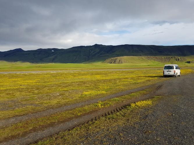C'era più gente di quanto ci si poteva aspettare, e questo l'avevo intuito già sulla nave che viaggiava a pieno carico. Comunque credo meno gente del solito: sono passato accanto a un deposito di mezzi a noleggio vicinoa Keflavik, e ho visto che circa il 30% erano ancora parcheggiati. La casetta che mi avevi segnalato non l'ho trovata, però ho seguito il tuo consiglio di andare a fare il bagno a Hveravellir la mattina presto: sono arrivato la notte e mi sono fiondato alla pozza calda prima delle 7. A quell'ora c'ero SOLO io, 'na goduria. P.S.: la strada per Hveravellir è ufficialmente di tipo F per circa 80 km, e all'inizio c'è un cartello che vieta chiaramente il transito ai non 4x4. L'ultimo tratto è bruttino.
