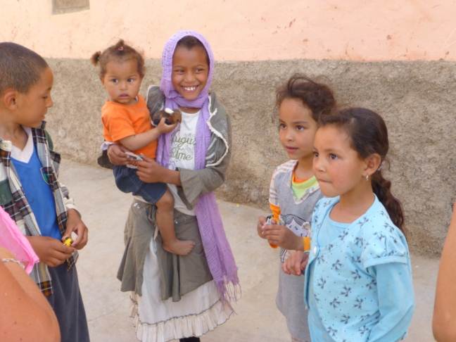 scusandomi con Justonfree per l'uso forse troppo personale del topic, cerco di dare un contributo fotografico distribuzione di materiale didattico e qualche giocattolo davanti ad una scuola (l'unica) in fondo alla valledi Ait Mansour. I bambini hanno un insegnante a mezzo tempo, poichè in mancanza di docenti, a gg alterni frequenta una scuola in altro paese. I bambini comunque stazionano nel piazzalino di fronte al modesto edificio in quanto non hanno altri luoghi da frequentare. le femmine sono sempre sobbarcate di impegni, specialmente l'assistenza ai fratelli/sorelle minori. andrea
