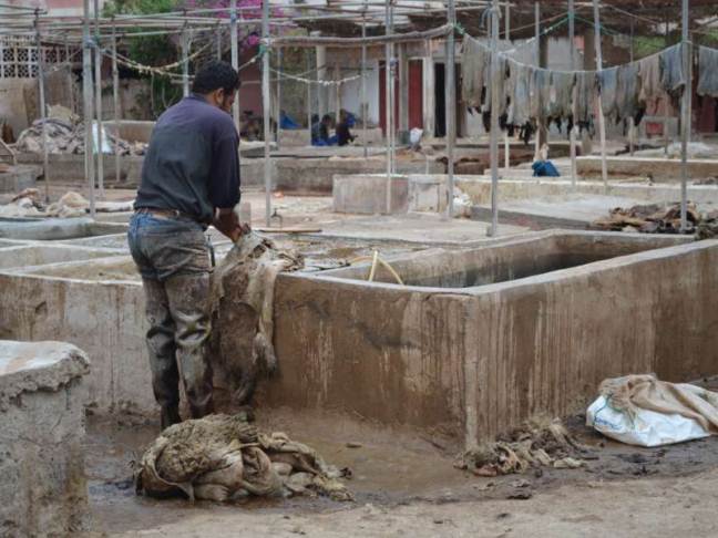 ciao Nazario e tutti l'unica cosa negativa sono i costi del ristorante,ma a bordo non hai scelta a meno che ti porti una borsa termica x frutta , pane e scatolette per qualche pranzo di mezzogiorno. Gli accampamenti di genteche dorme su poltrone o sui vari ponti mi sembra normale , lo fanno anche i miei figli per risparmiare se traghettano qualche scatto dal quartiere dei tintori di Taroudant ,meno turisticamente inflazionato da quello di Marrakech o ancor piu' Fes. Non so quale possa essere la paga,( penso non oltre 300 euro mese ) un lavoraccio! Per pulire l'interno delle pelli di capra o dromedario viene usata una mistura acida di guano di piccione e acqua che sgrassa e disinfetta, visita sconsigliata ai deboli di stomaco la vasca di guano i resti di un dromedario prima della lavorazione lavorazione finale ed eventuale tintura saluti max59