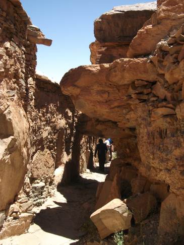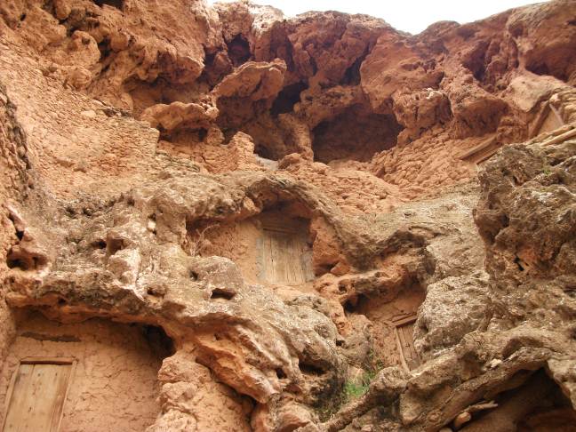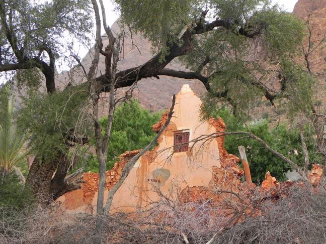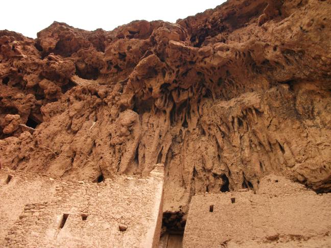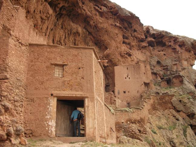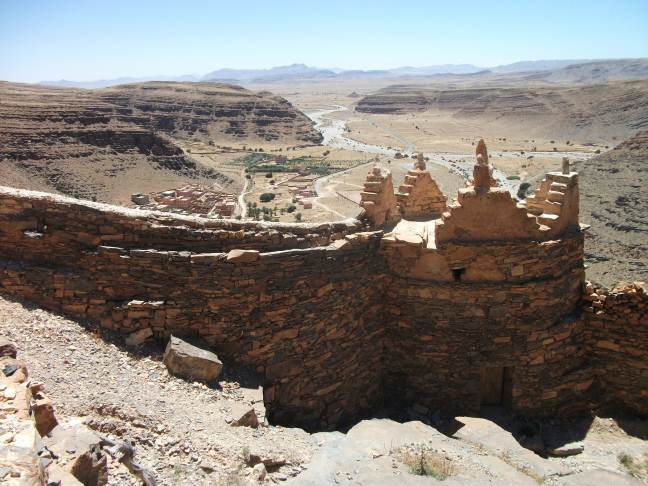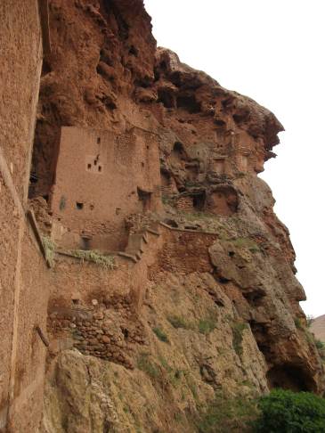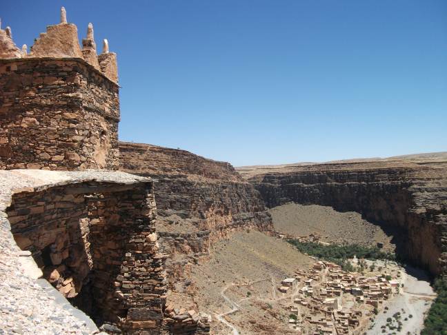 Risalendo il canyon , nella prima parte , si passa sotto ad un'altra kasbah fortificata , proprio sopra il villaggio di Aguelloui .