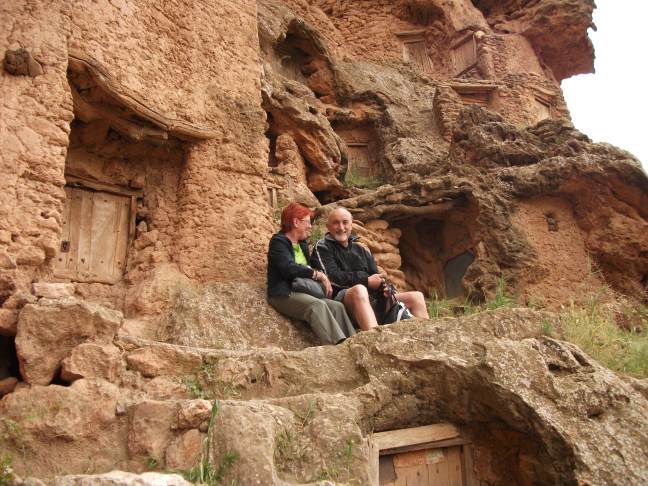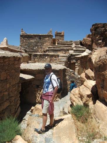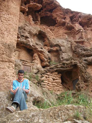AMTOUDI - un luogo veramente magico , fuori dal tempo , dove ci ho lasciato un pezzo di cuore . Villaggi perduti , alcuni incastrati nel canyon e dominati dall'imponente roccione sul quale troneggia l'antichissima kasbah fortificata risalente al 1200 . Kasbah tuttora visitabile previo accordo con il custode che risiede nel villaggio sottostante ( accertarsi in campeggio che il custode sia presente in loco prima di salire sul sentiero ripido tra i roccioni ) . Naturalmente è richiesta un'offerta solitamente di 20 dirham ( poco meno di 2 euro ) comunque a discrezione di ognuno . Il custode lascia libertà di movimento all'interno della kasbah rocciosa , accompagnandovi soltanto all'interno del piccolo museo molto semplice che racchiude oltre ad attrezzi e suppellettili varie , antichissimi contratti matrimoniali incisi su ossa di dromedario (vedi foto) e , alla visita della minuscola moschea ( attenzione alla bassissima trave di entrata perchè il luogo , è estremamente buio ) . La visita è comunque molto interessante , si possono vedere : l'antica cisterna dell'acqua , le piccole abitazioni in pietra incastrate tra i roccioni , la arnie in pietra , la moschea , il museo , etc.... Dopo la visita , si può ridiscendere sull'altro versante su agile sentiero che porta nel villaggio poverissimo all'imboccatura del canyon . Il canyon si può risalire tranquillamente con una passeggiata indimenticabile , fuori dal tempo , fino alle cascate molto suggestive e spettacolari . La scarpinata può durare un paio d'ore . Scarpe idonee e acqua potabile perchè l'acqua che si trova non è consigliabile berla . Nella prima parte,il sentiero è ben segnato e corre tra piccoli appezzamenti coltivati , orticelli , palme da dattero , etc... poi si perde nel greto dell'ouadi e , tra i roccioni bisogna indovinarlo e ,zizzagando tra piccoli bacini bordati di oleandri in fiore , si giunge alla base dell'ultima asperità da affrontare con prudenza . In cima si possono ammirare le cascate ( piccoline ma suggestive per dove sono incastrate - vedi foto) .