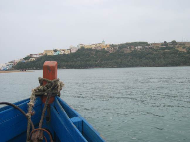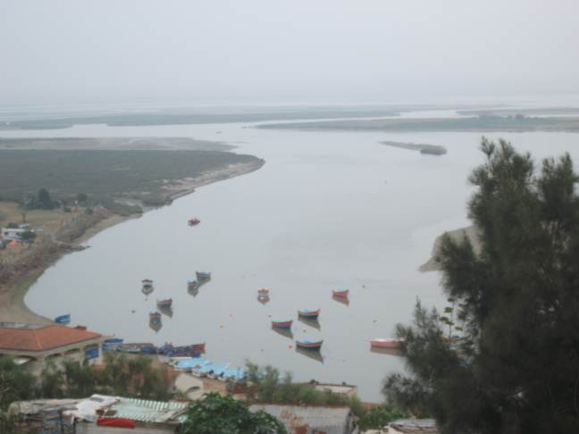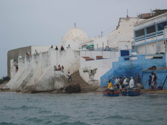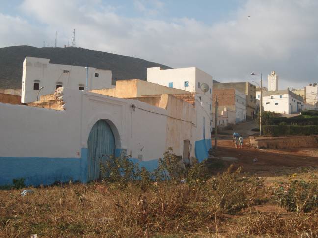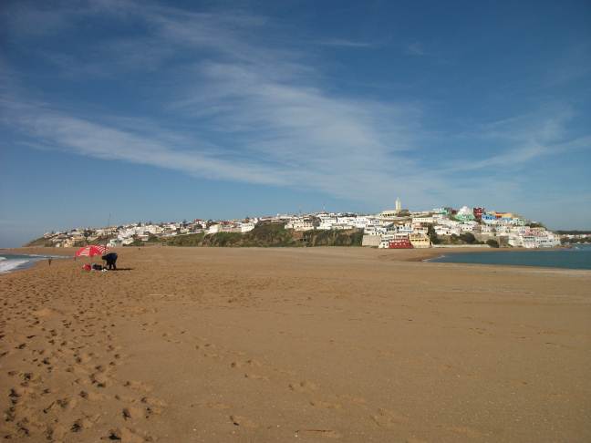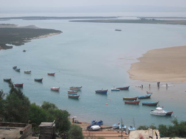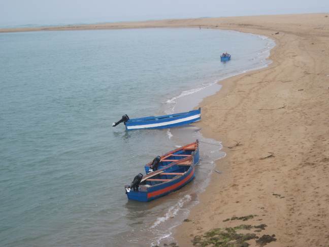 cittadina di  MOULAY  BOUSSELHAM  ,  a sinistra l'oceano  , a destra la laguna di  MERJA  ZERGA