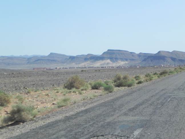 qualche immagine lungo la strada  N 12  , nel tratto tra il villaggio di  ALNIF ( famoso per i fossili )  e   RISSANI  .    Si  tratta di un tragitto  di un centinaio di km. ma , ad esclusione del piccolo borgo di MCISSI , non c'è assolutamente nulla , la strada corre in un paesaggio desertico , perduto  e isolatissimo per cui , imperativo avere il  mezzo in perfetta efficienza .     Per gli appassionati di fossili , ricordo  ad ALNIF  la grande bottega del simpatico geologo MOHAND IHMADI  ( Trilobites Center ) , dove potete trovare ogni sorta di reperti fossili e minerali disparati .  I prezzi però , sono abbastanza cari .   Se volete , a MCISSI , dopo circa 40 km. da ALNIF sempre  lungo la strada N 12 , potete fermarvi a visitare l'immensa ed eccezionale  esposizione di fossili della famiglia MOUJANE , i prezzi sono senza dubbio più economici anche se si deve trattare sempre . ( coordinate  N 31°10,97'    W 4°57,91'  )