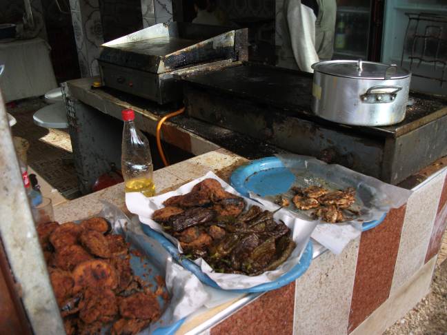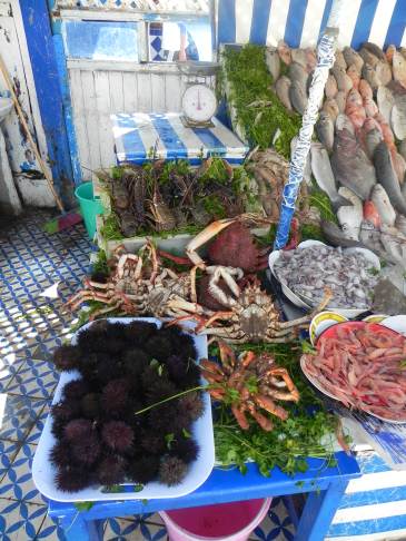 i  chioschetti  del pesce al porto di  ESSAOUIRA  dove ci si può comporre il proprio menù a piacere trattando e fissando il prezzo (molto economico) .   Scelta eccellente di prodotti che vengono arrostiti sul momento ( ricordarsi di portare il vino ) .