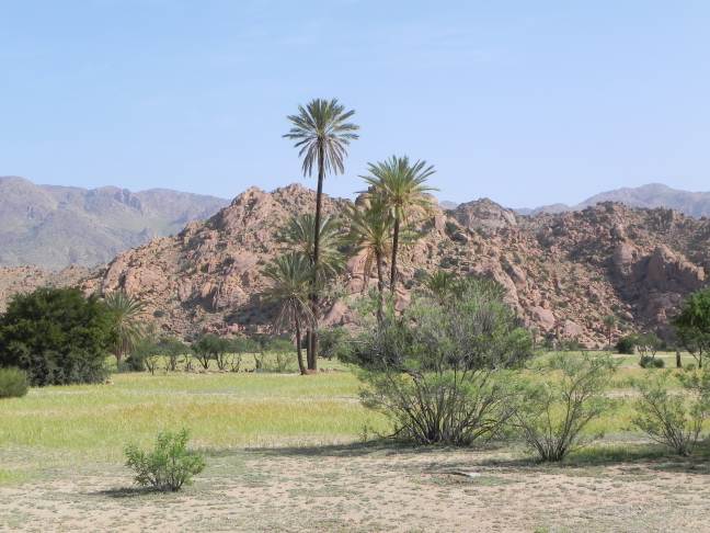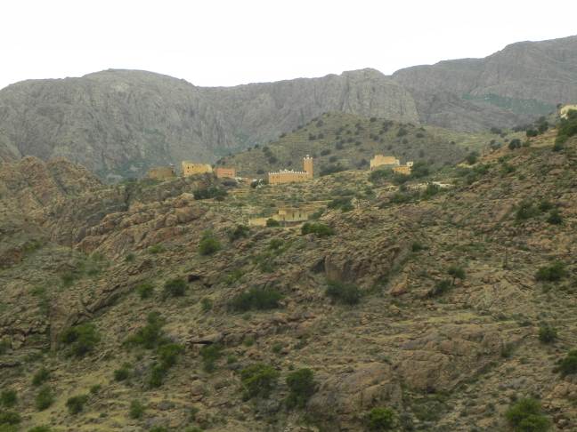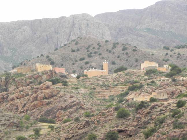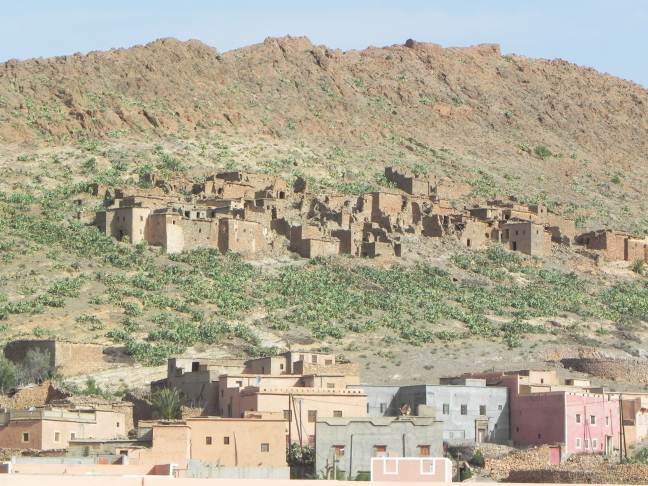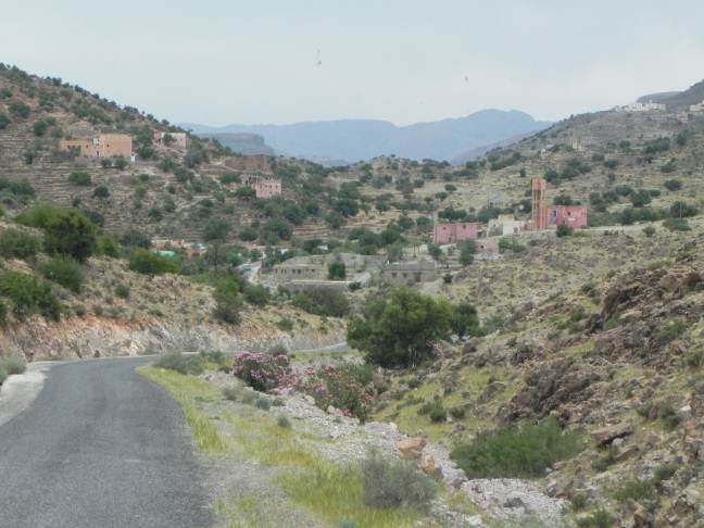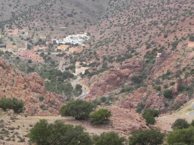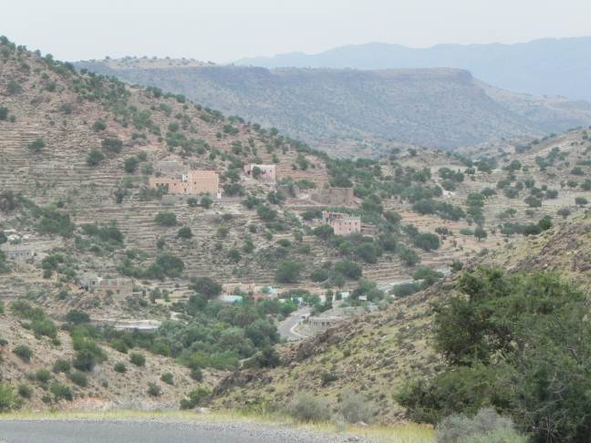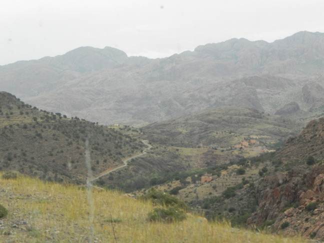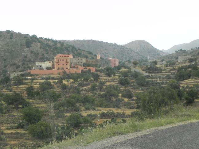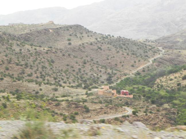 alcuni panorami in risalita da AGADIR  a TAFRAOUTE  .   Nel 2014 , la strada principale R 105  era interrotta nei pressi della cittadina di  AIT BAHA  e si doveva deviare obbligatoriamente su questa stradina di montagna per oltre 30 km. , attraverso  villaggi e paesaggi perduti , fino ad arrivare sul colle dal quale poi , si scende a  TAFRAOUTE  sulla R 104 .   Mi auguro che nel frattempo , abbiano ultimato i lavori .