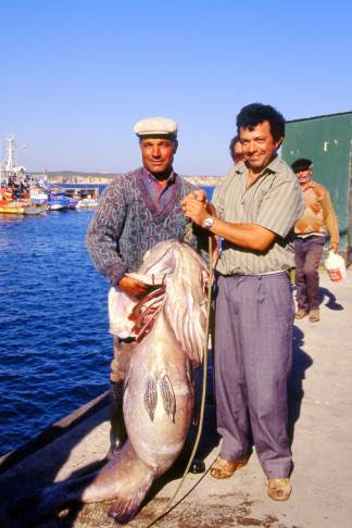 Quella sorretta dai due pescatori è una cernia gigante... (ex pescatore subacqueo...)