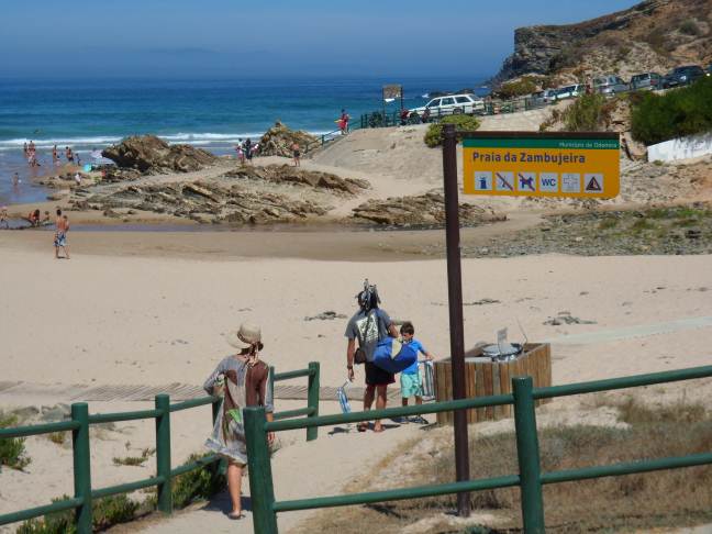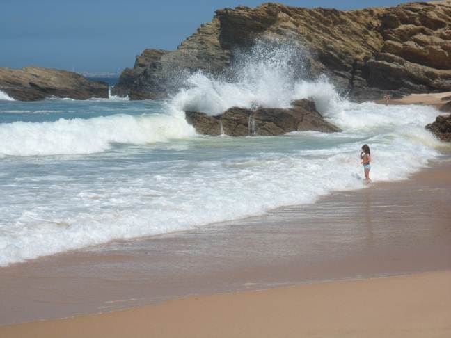 le foto postate prima di me delle località di mare rendono bene l'idea del tipo di balneazione possibile (quando lo è...) Dato che per tutti noi si tratta di una paccata di km , a scanso di equivoci, posto una foto dimare calmo con un unità di misura umana.... per molti (me compreso) è l'ideale, ma per chi è abituato al mediterraneo è meglio saperlo prima... siamo a Porto Covo interessante anche l'ubicazione dell'area camper (nel 2012, spero non sia cambiata) scusate la qualità dello scatto