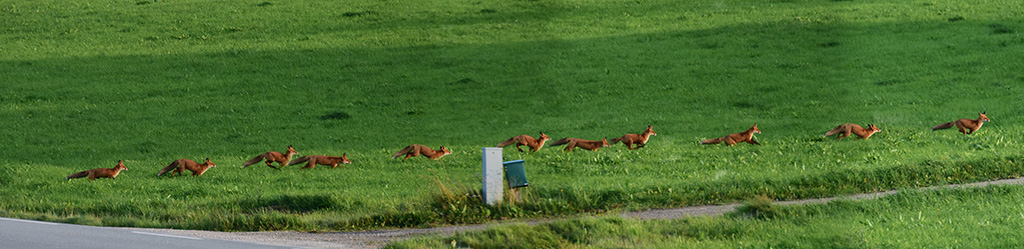 Mentre mi rispondevi, stavo facendo la time-lapse del movimento a balzelloni della volpe nell'erba. Fatta in modo molto veloce, un po' alla buona, giusto per far vedere i movimenti... Eccola qua: Volpe in caccia Ciao da Dash