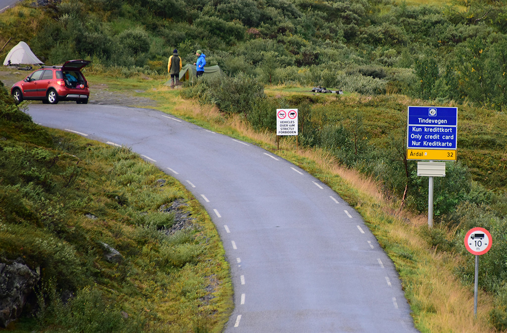 La stradetta non è più stretta di altre in N, il vero nodo, a mio parere, sono i tornanti della fardalvegen che scendono/salgono a/da Ovre Ardal, affrontabili al limite da mezzi di 6m, dato il combinato disposto pendenza+raggiocurva+ x, dove x sta per quello che non vedi provenire in senso opposto. Le strade se percorse con normale buonsenso sono percorribili, tranne alcuni punti dove lo stesso buon senso dovrebbe consigliare di lasciare perdere, ma il gigantismo locale + neurone mancante del turista medio crea poi il normale disagio del blocco stradale.. Ne consegue che mezzi incastrati nei tornanti non dico stiano diventando la prassi, ma se ne trova traccia sempre più spesso, dato l'aumento sensibile di transiti in periodi ristretti, fenomeno con punte elevate in tempi limiti. Poi se trovo la calamita che mi attira verso questo genere di..sfighe..