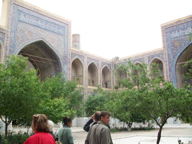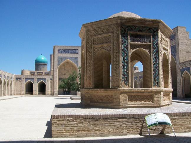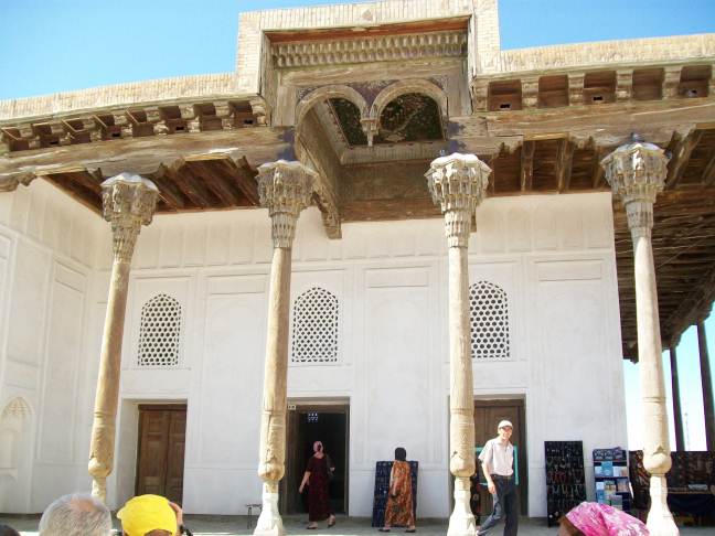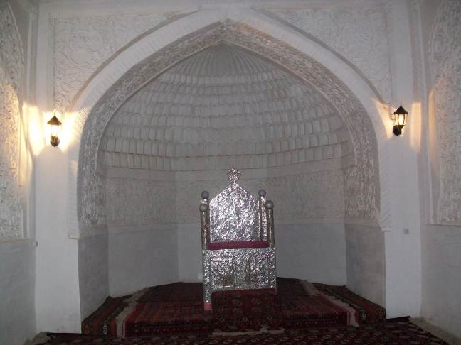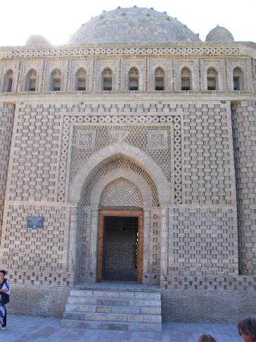 Tanto per chiudere in bellezza , posto ancora qualche immagine di BUKHARA l'antichissimo mausoleo di ISMAIL SAMANI , risalente al 950 , uno dei più antichimonumenti musulmani di BUKHARA . Costruito in modo molto elaborato con mattoni di terracotta che mutano carattere nel corso della giornata a seconda della variazione delle ombre . Le mura sono spesse oltre 2 metri. la sala del trono dorato dell'ultimo emiro di BUKHARA : ALIM KHAN , incoronato nel 1910 ( a lato nella teca , un suo vestito e sullo sfondo la sua fotografia) . L' emirato capitolò nel 1920 sotto i bombardamenti dell' Armata Rossa .