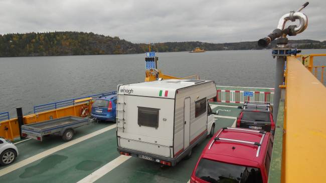 Ok, posto ancora qualche chicca... A inizio ottobre sono andato a visitare il palazzo di Drottningholm, che purtroppo era chiuso, mentre solo il parco era aperto. Gira qui, gira lì, insomma era il primo pomeriggio di sabatoe già non sapevo che fare. Prendo la cartina, comincio a guardare le isolette del lago Mälaren (il lago enorme a Ovest di Stoccolma) e dico: sapete che c'è? Si va per isole. Punto prima verso Ekerö, poi Munsö e infine Adelsö. Rettilinei che attraversano campi e foreste, natura splendida (noiosa per alcuni, anche per qualche svedese), ma a me piace specialmente in autunno. Mi ritrovo davanti all'imbarco del traghetto per Adelsö, che scopro essere gratuito: In un escursione improvvisata nell'isola (notare che fino a 2 ore prima non conoscevo l'esistenza neanche dell'isola di Adelsö), scopro che è famoso per la ricostruzione di un villaggio vichingo (naturalmente visitabile gratuitamente e con ampio parcheggio dedicato a camper e caravan nelle vicinanze). Sosta notturna nel parcheggio vicino al sito, comodissimo, poi traghetto e dinuovo in strada verso Ekerö a vedere un palazzo e un parco. Quando mi sono stancato, da Ekerö ho preso il traghetto verso sud, anziché fare il giro fino a Stoccolma: ho speso 6,50 € di biglietto ma ho risparmiato 30 km. Un weekend molto tranquillo, senza pretese, giusto per stare all'aria aperta.