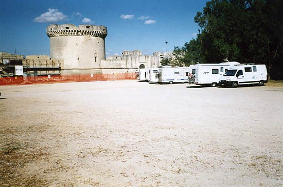 Comunale, dietro il Castello, in parte transennata del parcheggio, illuminata, segnalata, a pagamento (tariffe 2006: € 10/24 h), tel. Comune 0835 241308 - 0835 241345 Ciao Mauro