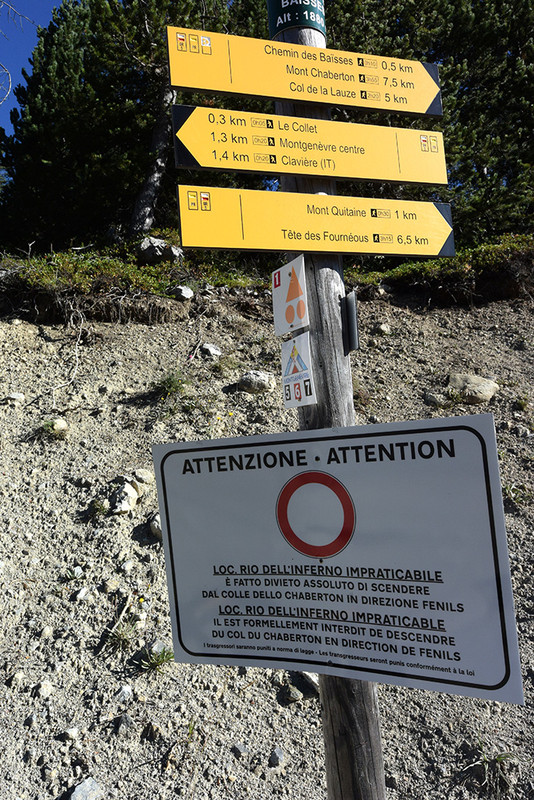 Adesso che sono fresco della lettura delle 14 pagine che si sono fin qui sviluppate, ecco una serie di avvertimenti abbastanza aggiornati (derivanti da osservazione diretta quest'estate) sulla percorribilità e/o la fattibilitàdi alcune strade e/o sentieri. Naturalmente alcune osservazioni andranno riviste l'anno prossimo, ma ce ne sono altre (tipo quella della Val Roya) dove la problematica sarà purtroppo lunga e piena di problemi...C'è chi ha chiesto quale fosse il posto più comodo per parcheggiare il camper per fare lo Chaberton in MTB. La risposta unanime è stata l'abitato di Fenils, una diramazione sulla dx della SS.24 fra Oulx e Cesana. Purtroppo si sono verificate delle frane in località INFERNO (un nome, un programma), per cui la mulattiera che reca in cima è transennata con il divieto assoluto di transito a causa dell'estremo rischio presente. Ecco un pannello indicatore fotografato quest'estate ad agosto (in ita/fra):C'è chi ha chiesto se si può fare il Colle della Scala in camper, dani1967 ha risposto in camperone NO. spiego meglio la problematica: in corrispondenza del valico c'è un tunnel con limite di altezza di 3 m, non mi azzarderei con un mansardato o un megacamper tipo quello di marino2, però l'ho fatto con il mio MH Laika Kreos 8009 (731 x 298 x 231, sbalzo 230 cm circa -a occhio-). Inoltre ci sono 5 guadi in cemento con avvallamento profondissimo che richiedono di essere attraversati in diagonale e soprattutto a passo d'uomo, per non toccare dietro. Si può fare ma occhi ben aperti, e magari scegliete un orario in cui c'è poco traffico: incrociare in certi punti può essere una trappola... La strada del col de Granon: l'ho fatta sia con un Ducato TA da 6,72m, sia con un gemellato TP Ford da 7,31 m. Però siccome ci sono tratti fino al 13-14% su sterrato, col TA se s'incrocia qualcuno è possibile piantarsi e per ripartire magari può toccare fare una retro non proprio agevole... Col gemellato si riparte senza problemi. Ho pernottato in piano almeno 4 volte su a Granon, il panorama è spettacolare, le gite a disposizione (sia a piedi sia in MTB) sono molte, magari aggiungerò qualcosa all'ottima gita al Lac de l'Oule gà descritta da caronbz A Névache nei mesi di luglio-Agosto la strada della Haute Vallée è chiusa al traffico privato non residente (con fasce orarie possibili prima delle 8:30 del mattino e dopo le 18 di sera, sia in salita sia in discesa). C'è però una navetta gratuita (12 corse all'ora) che fa la spola fra il P di Roubion e il piazzale di Névache, e un'altra navetta a pagamento (3€/persona ?) fra Névache e la testata della valle (Chalets de Laval, fermate intermedie per il Ref.Buffère, il Ref. e il Camping Fontcouverte, altre su richiesta). Pertanto l'accesso al Camping Fontcouverte è assai difficoltoso in alta stagione. Inoltre il gestore, dopo che gli è stata rovinata più volte la fossa biologica per lo scarico di cassette contenenti formaldeide, adesso tiene sotto chiave la zona di scarico e lo nega a tutti, anche a quelli che usano prodotti non dannosi per la fossa. Bisogna andare su avendo magari una doppia cassetta vuota (possibilità di CS al bivio della strada del Colle della Scala, cartello indicatore, carico acqua a pagamento, scarico grigie e cassette gratis).Per ora ecco queste informazioni di servizio, ne seguiranno altre. Ciao da Dash