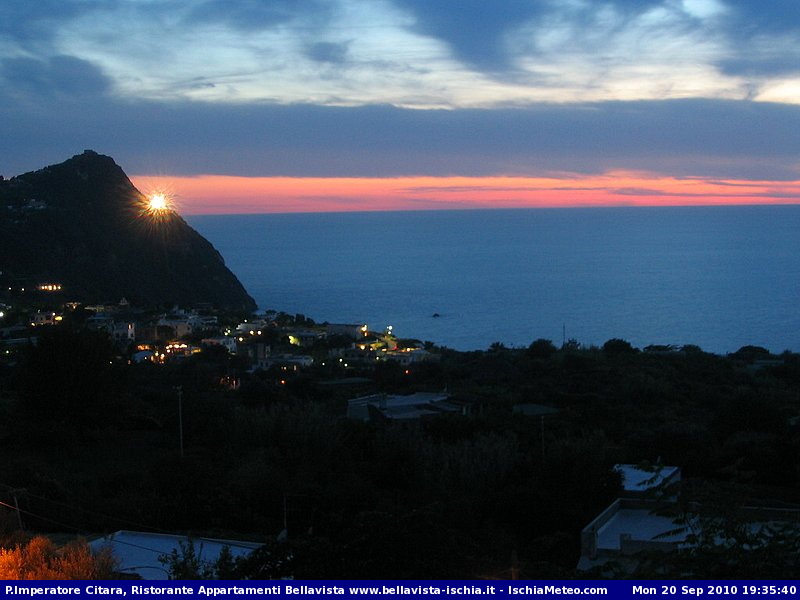 Una delle webcam che ho installato a Ischia ha catturato un tramonto molto bello a Forio. La cosa particolare è che mentre la webcam faceva il suo scatto automatico il faro di Punta Imperatore emetteva il suo fascio di luce: www.ischiameteo.com