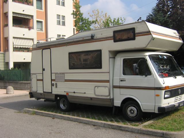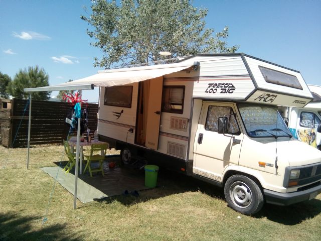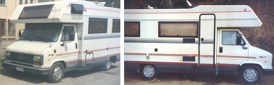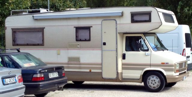 Colore beige (vano motore) e bianco, del 1982. La portiera di accesso al vano posteriore è ammaccata, la maniglia di scarico delle acque chiare è stata riadattata con una maniglia artigianale in ferro, aveva montato il portabiciclette e, sul tetto, un portaoggetti grigio (parte superiore) e nero.