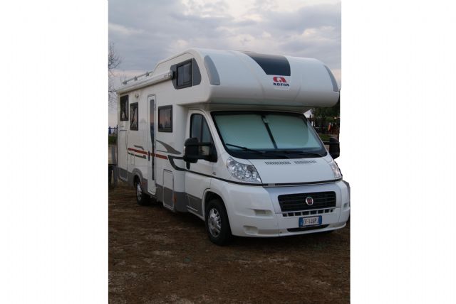 Il camper è un Mobilvetta Kea P60, 6,20m, profilato, del 2010, completo di portamoto Edicar pannello fotovoltaico e antenna satellitare.