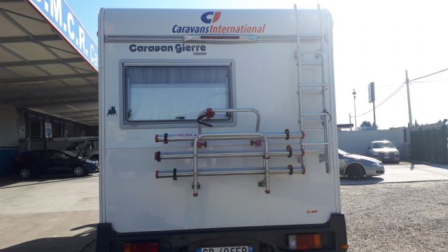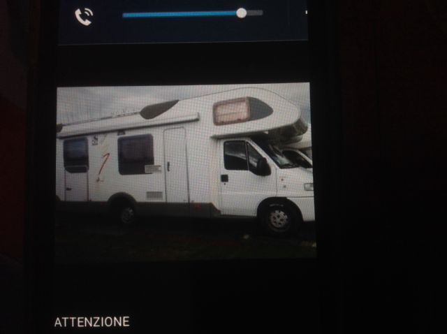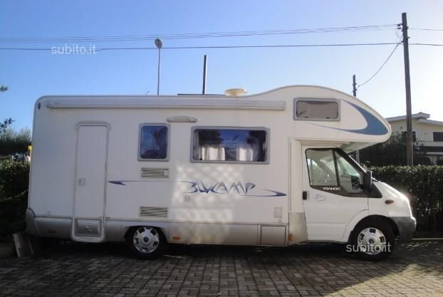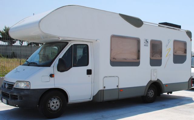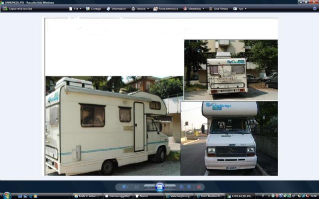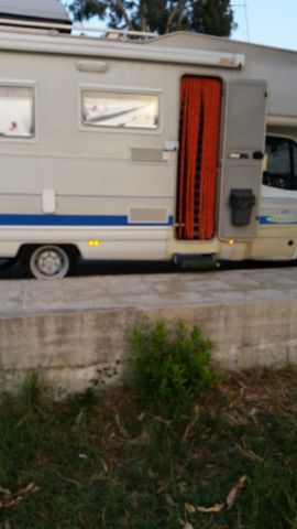 segni particolari: adesivo arancione in alto a sinistra lato destro camper come da foto, tappo antenna non utilizzato sul paraurti anteriore destra, sulla finestra frontale della mansarda scritta Sharman (abbastanza scolorita), porta entrata sostituita porta color bianco più intenso, bandelle scolorite e rovinate.