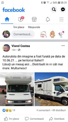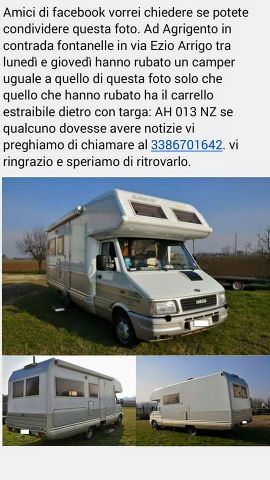 "Ciao a tutti, è stato rubato il camper a mio padre, oggi 29/08/2020 verso le ore 18.00 a Santa Marinella nei pressi di via delle Magnolie.